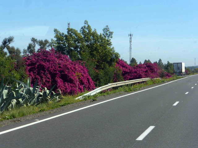 Une profusion de bougainvilliers le long de l'autoroute.